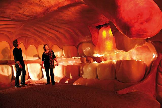 荷兰小镇乌赫斯特海斯特临近莱顿,因其人体博物馆而名声大噪。博物馆的设计非常抢眼,一半为土黄色的巨型人体坐像,另一半罩着透明玻璃,非常有现代感。让人惊讶的是,大楼底层外墙居然不是砖块建造,而是用拳头大小的青石堆砌而成,从外面甚至可以隐约看到内部的亮光。工作人员解释说,这是为了保持馆内自然通风。
