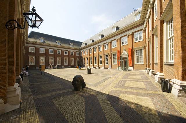 海牙最著名的博物馆当属皇家莫里茨皇家美术馆。美术馆坐落在海牙市中心,本是莫里茨王子的离宫,于1821年经改造成为皇家美术馆。美术馆蓝顶白墙的玲珑曲线,映在破光粼粼的运河里。室内巴洛克风格的长毛地毯吸进足音,豪华气息处处可见。馆藏的自荷兰黄金时代起的300幅画作,均是重量级的作品,例如伦勃朗的《杜尔普教授的解剖课》、维米尔的《戴珍珠耳环的女孩》、毕加索的《女人与陶》、鲁斯本的《圣母升天图》等等。