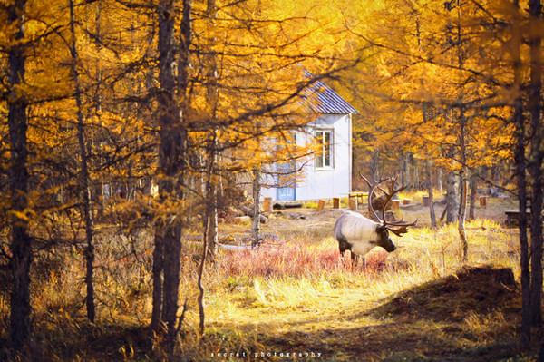 说是驯鹿园,其实里面是一片白桦林,在丛林深处,驯养着一群驯鹿。它们安静,温顺。在这片树林里,还有古老的部落,古老的生活着。渐渐的,我们进入的大兴安岭。