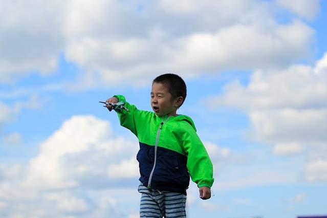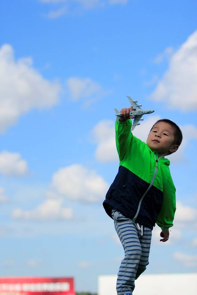 小家伙对这次飞行很是期待,自己一直充当着飞行员的角色,很欢乐。