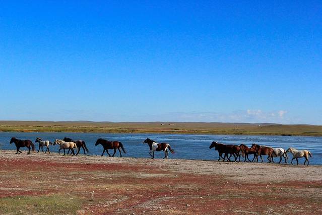 呼伦湖是我国五大淡水湖之一,是如海一样的胡泊。呼伦湖和贝尔湖便成了呼伦贝尔。从满洲里到呼伦湖,也是穿越草原,一路捡石头,看马看羊看奶牛。时不时的有牛群和羊群穿过马路,于是我们就停下车,与其说是等待他们过去,不如说是在欣赏别样的风景。越往下走,我们就里阿尔山越近,步入深山,阵阵凉意袭来。原始森林,让我不禁想起,夜晚总有野狼和狗熊出没。实则是我想多了。它们还不至于胆子大到进入村庄。
