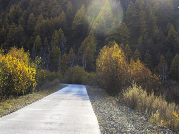 接下来这一路,说实话,不好走,都是弯弯曲曲的山路,有的地方还在修路,我们一路颠簸,但是走走停停,倒也很是享受。穿过村庄,转过山路。走过童话般的树林长廊,越过尘土飞扬的黄土小路。那里的公路,无论是笔直的,弯道的,都会让人觉得延伸至无限的远方。