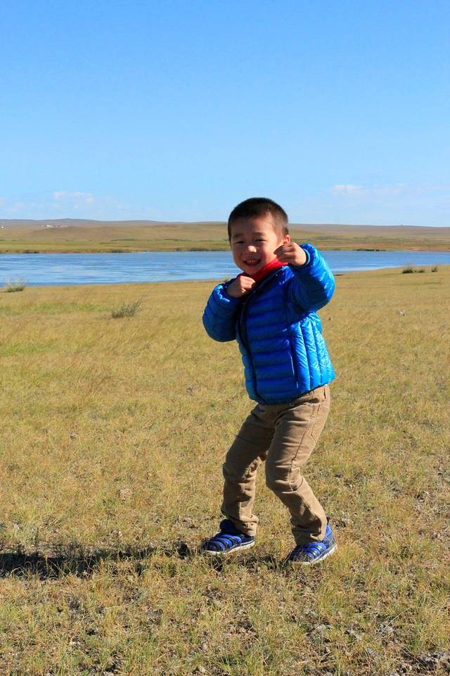哈尔滨的转机时间比较长,有5个小时,但是中间吃了午饭,然后机场前面有一大片草坪,小王子在这里也玩的很high,所以自觉时间也过的很快。下午四点多到的海拉尔,宋师傅就已经来机场接我们去酒店了。