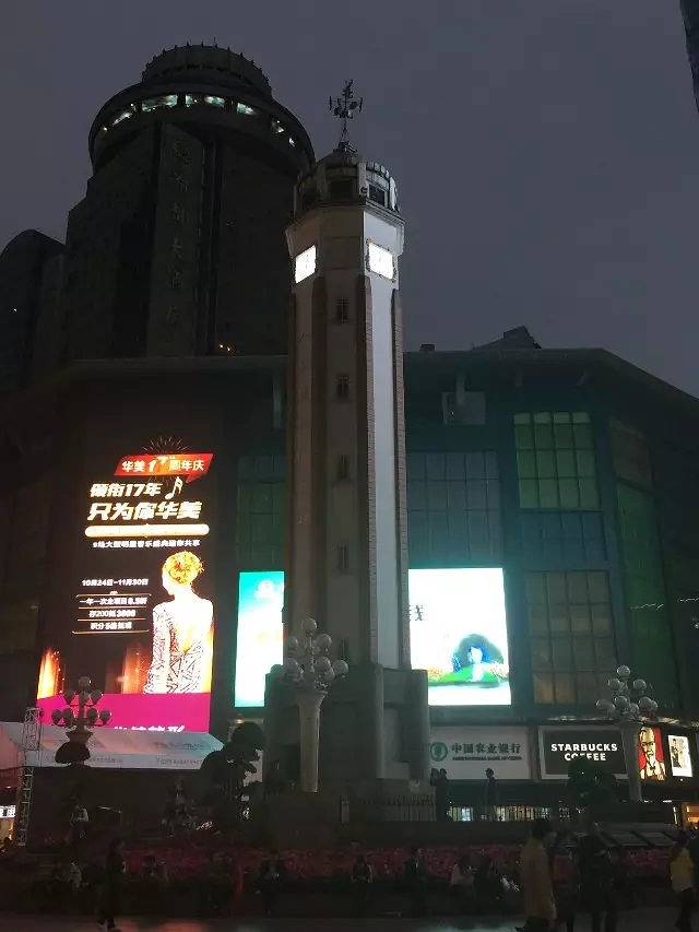 傍晚在解放碑步行街附近吃了重庆烤鱼,还发现一家很好玩的咖啡店。logo是猴子,解放碑步行街的商场很多,趁天还没黑就在附近转转。