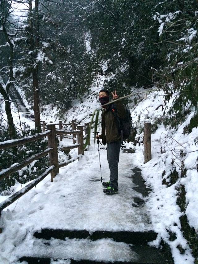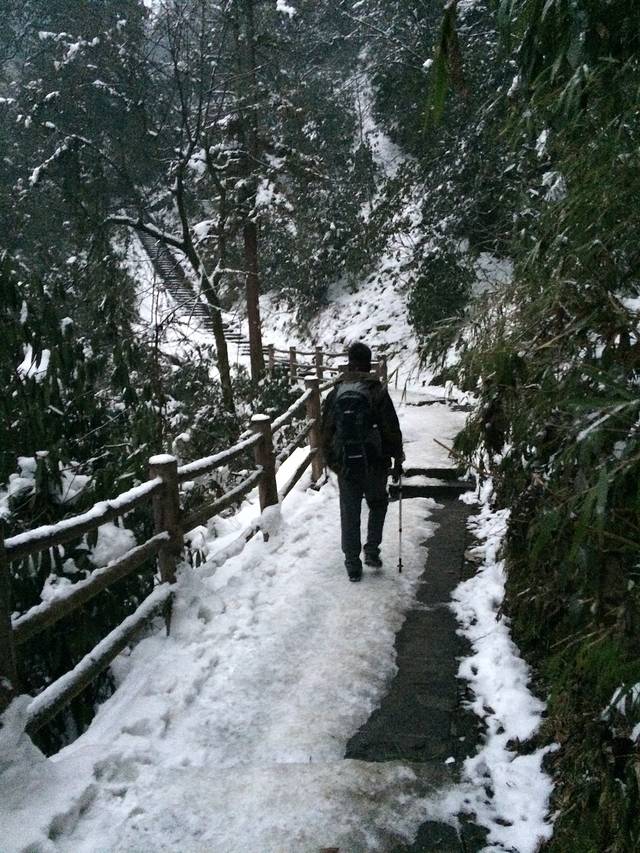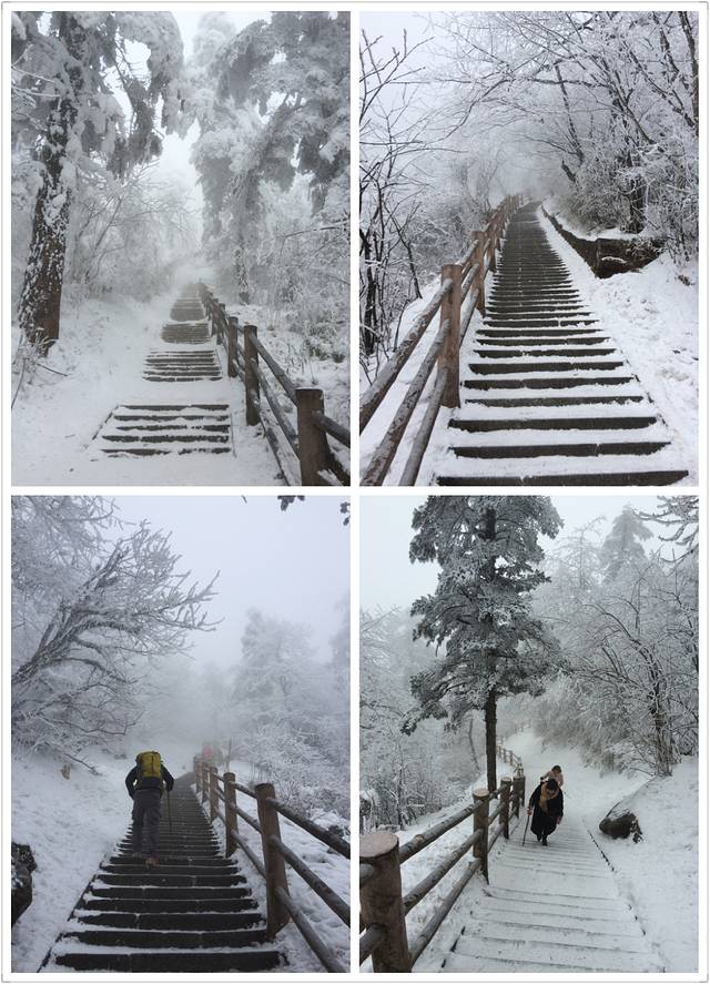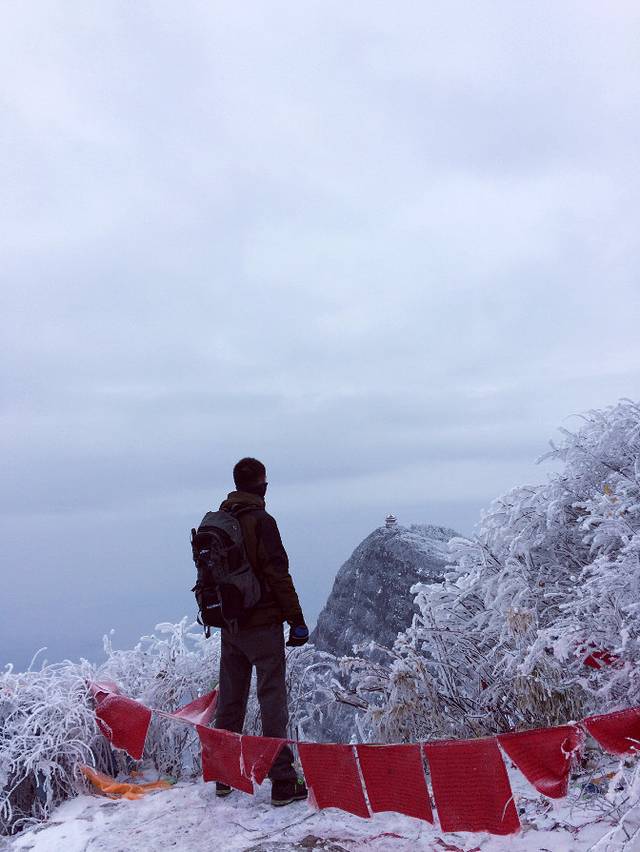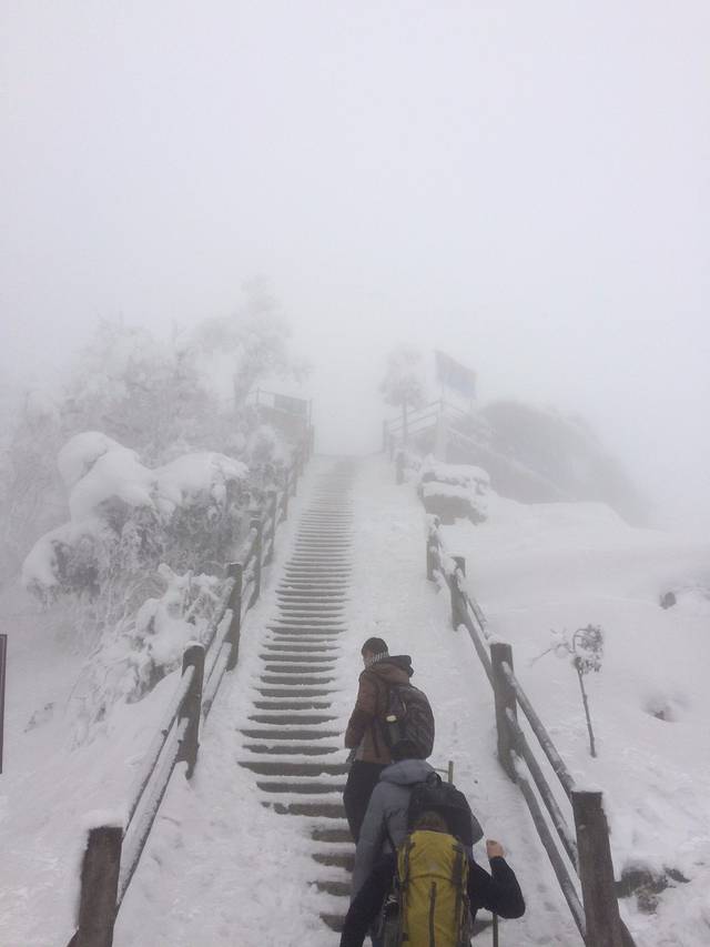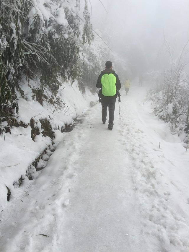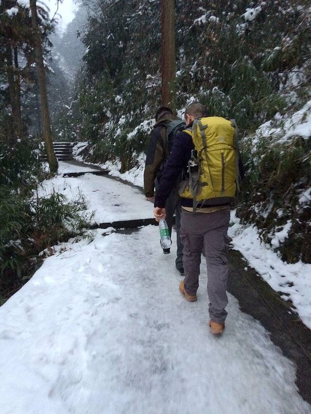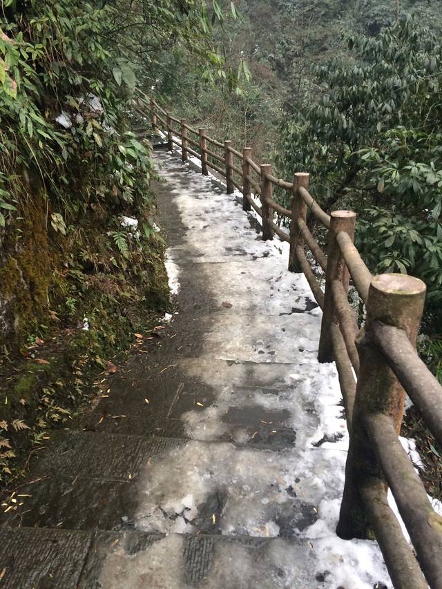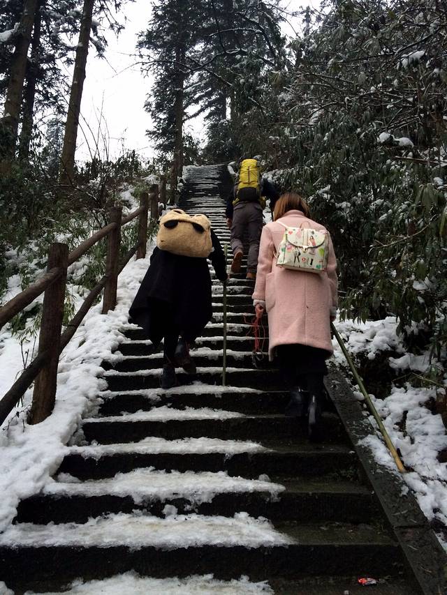 物品清单:登山包,冲锋衣,登山杖,登山鞋,冰爪这些必备的嘛!其次就是帽子手套口罩或者像我一样魔术头巾耳朵鼻子都能遮住,衣服我是保暖内衣一套+冬季衬衫+套头卫衣和冬季卫裤+冲锋衣感觉足够保暖了,爬低山区的时候还很热! 主要说下冰爪,冰爪,冰爪,重要的事说三遍!虽然峨眉山到处都有卖冰爪的,但是我要说那叫冰爪么,太简陋了不抓地不说而且容易坏,绳子很容易被磨断!路上的小伙伴深有体会。