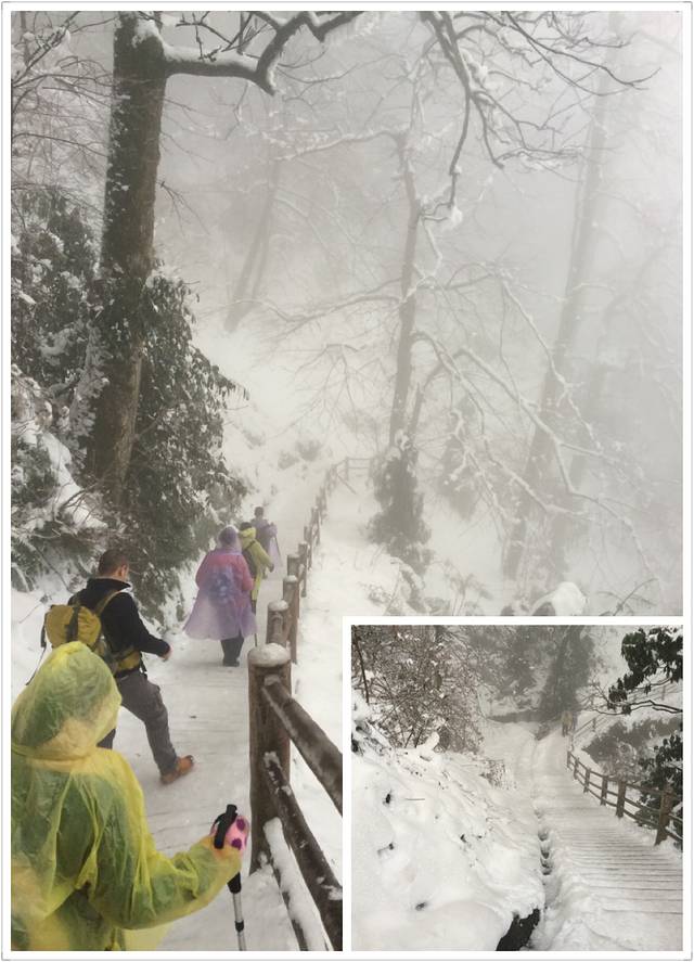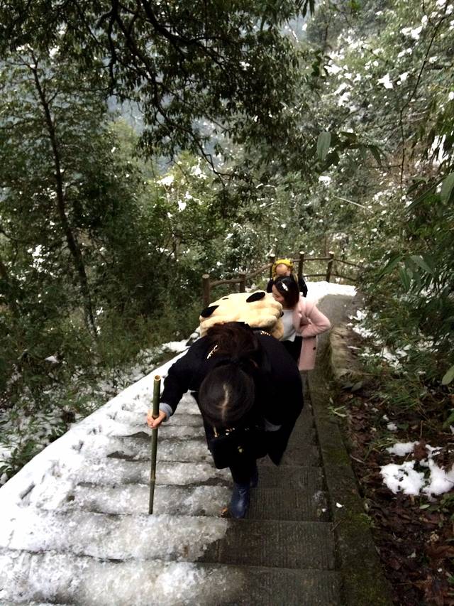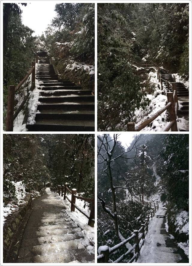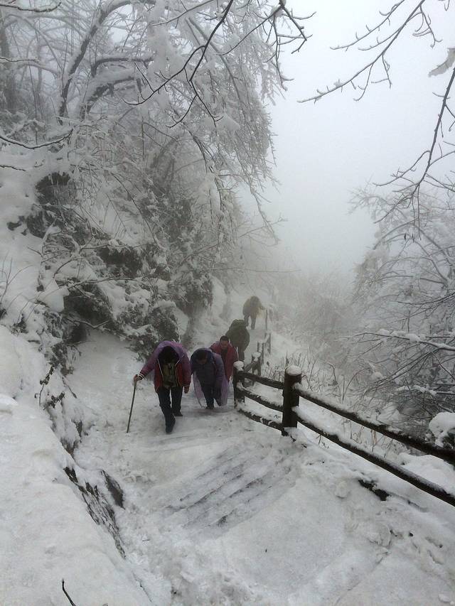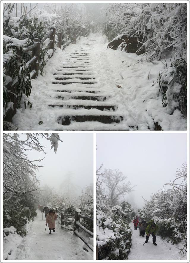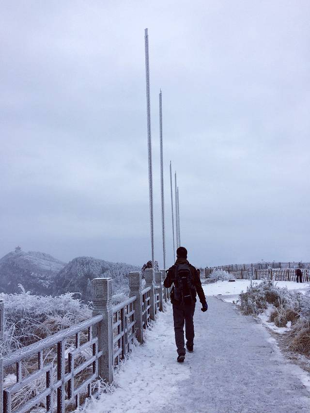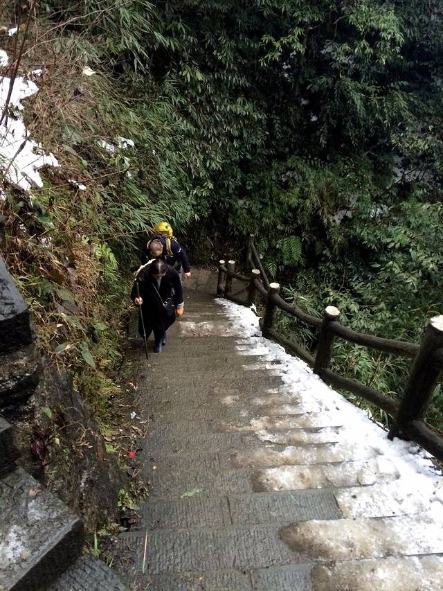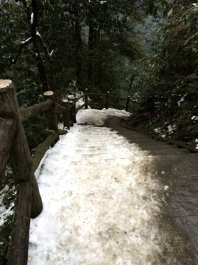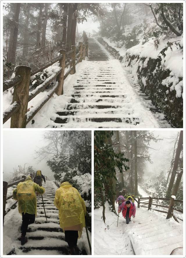 物品清单:登山包,冲锋衣,登山杖,登山鞋,冰爪这些必备的嘛!其次就是帽子手套口罩或者像我一样魔术头巾耳朵鼻子都能遮住,衣服我是保暖内衣一套+冬季衬衫+套头卫衣和冬季卫裤+冲锋衣感觉足够保暖了,爬低山区的时候还很热! 主要说下冰爪,冰爪,冰爪,重要的事说三遍!虽然峨眉山到处都有卖冰爪的,但是我要说那叫冰爪么,太简陋了不抓地不说而且容易坏,绳子很容易被磨断!路上的小伙伴深有体会。