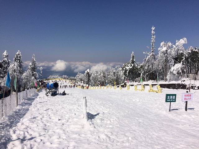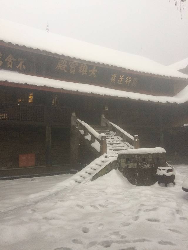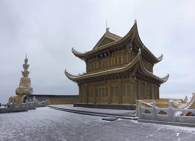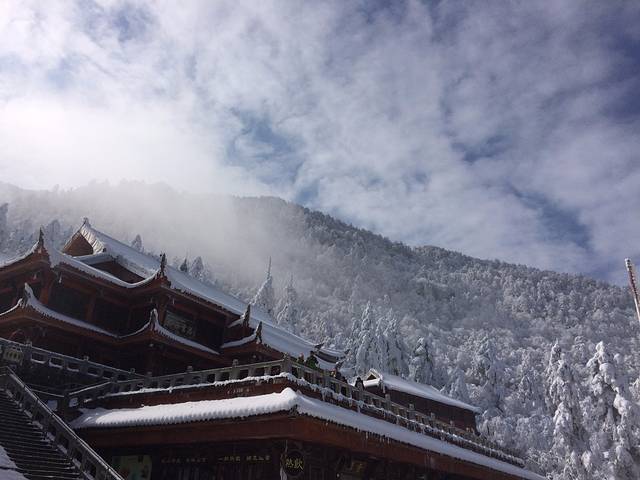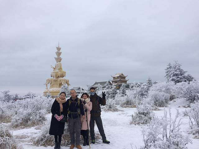 D3:7点起床拍照游览金顶一上午,中午坐缆车下到雷洞坪免费滑雪一小时,晚上泡灵秀温泉尝峨眉美食,睡到自然醒回家过年!