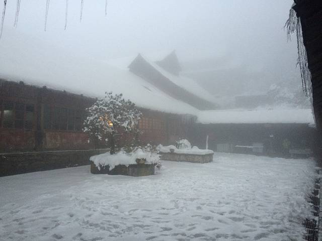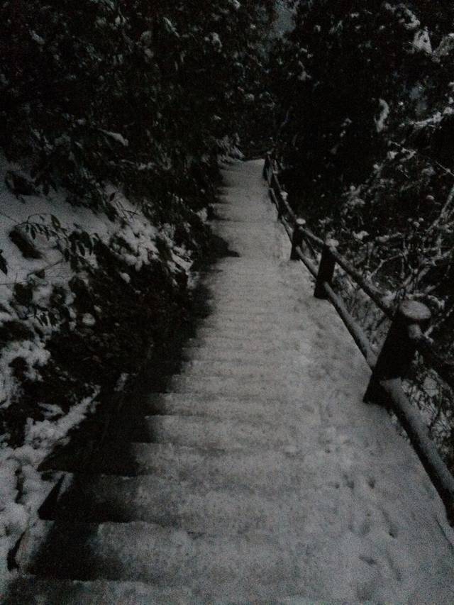 我原计划就是住洪椿坪,第二天到太子坪!结果我们到洪椿坪的时候才4点30,所以就继续爬!过了洪椿坪路上就开始出现积雪了,人也变得兴奋起来,路上遇到2个下山的说我们到仙峰寺要4个多小时,到仙峰寺肯定都9点了。结果我们才用3个小时7点半就到仙峰寺了,中间除了九十九道拐两个妹子累的不行其他都还好!