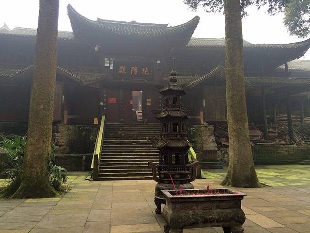 D1:报国寺-伏虎寺-雷音寺-纯阳殿-神水阁-中锋寺-广福寺-雷音寺-一线天和生态猴区-洪椿坪-入住仙峰寺。
