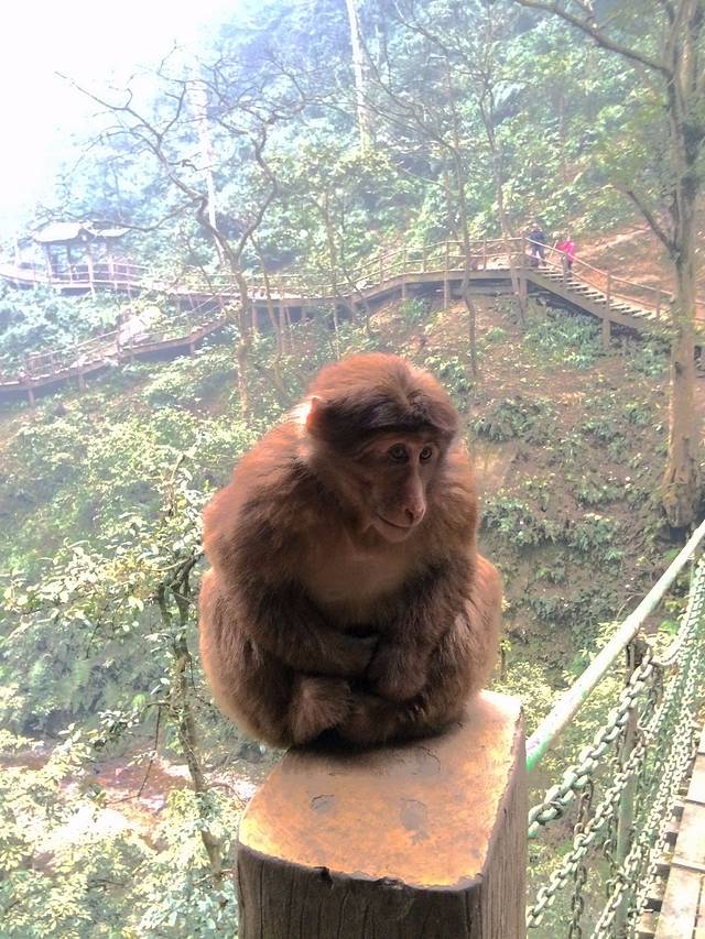 人物:一个人的旅行并不会孤单,也无需害怕。在纯阳殿遇到来自贵州在重庆工作的波哥,一路结伴而行,过了猴区遇到川妹儿两枚,遂宁的香菜,眉山的桃子,说来也是巧她俩住成都的地方和我就隔两个公交站。但是别看是妹子,装备也没有,穿的还是皮鞋!但是体力真的挺好的。下午3点半在猴区相遇一路结伴而行4点半到达洪椿坪,7点半到仙峰寺,第二天也是把仙峰寺同路的其他男生甩掉,一路上和我们各种赶超前面的人在5点40到达金顶!更疯狂的是下山之后去峨眉山市区吃完东西,晚上步行6公里回住的地方!