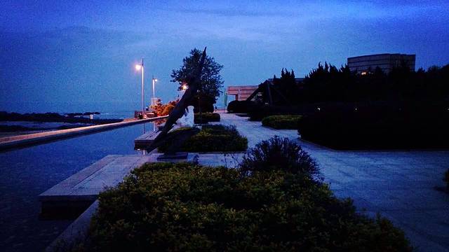 晚上的雕塑园,夜晚青岛的海别有一番韵味