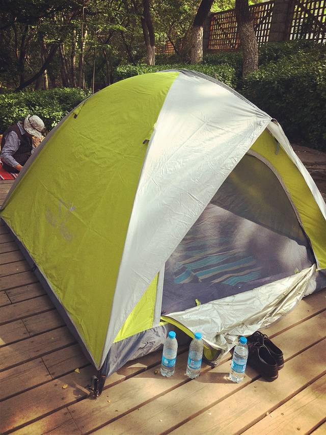 帐篷搭建完成,买的是3-4人的帐篷,空间很大,3个大人、1个小孩没问题。挡风效果非常好。诺哥的午觉就在里面解决了。
