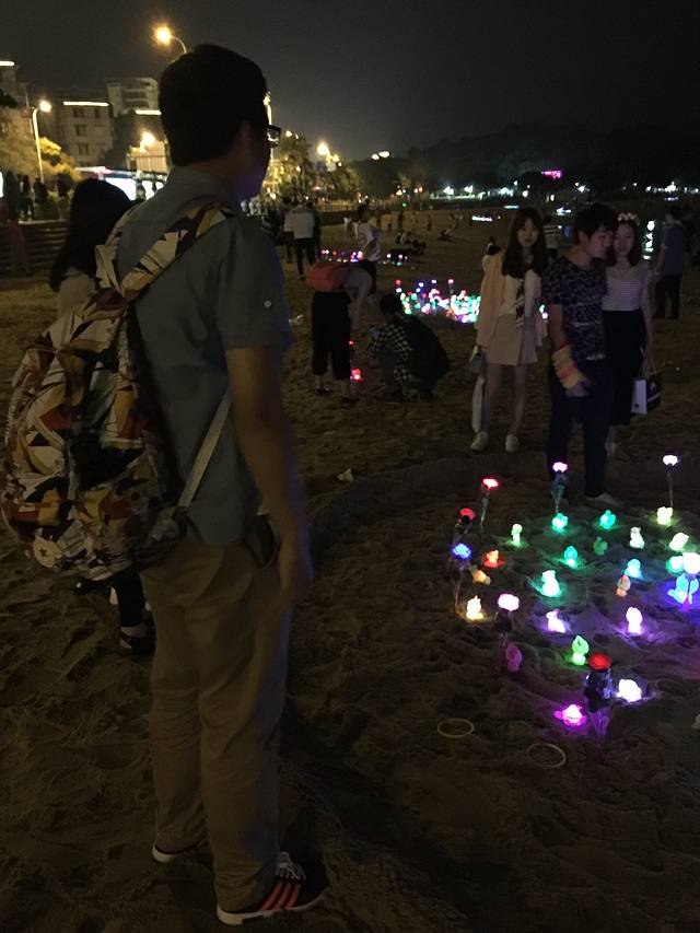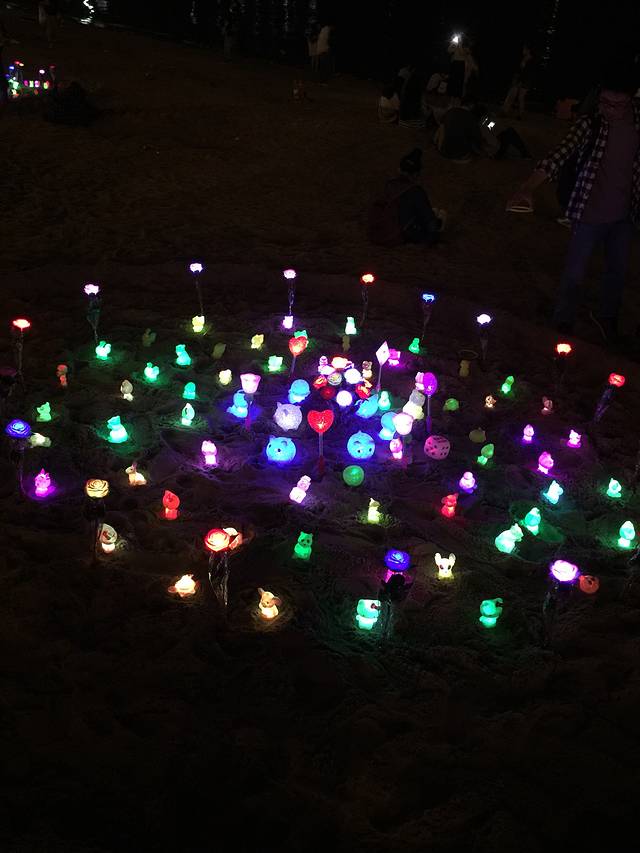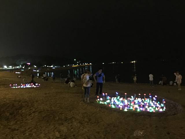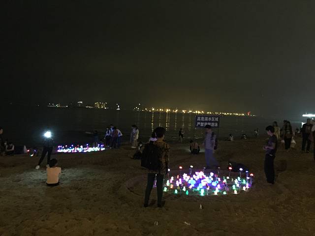 晚上的白城沙滩,我们租了自行车,不下雨了,沿途欣赏风景。环岛路人特别多。