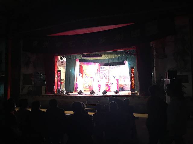 下午六点半左右的天空,已经微微泛黑,到达民宿附近,看到这个大戏台,下面坐着一堆当地人,他们津津有味的听着。