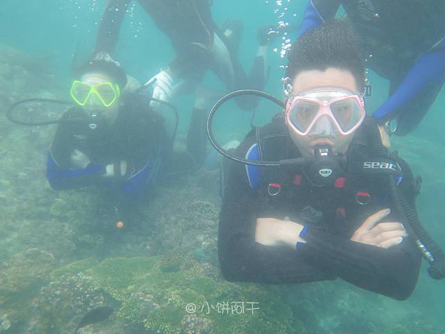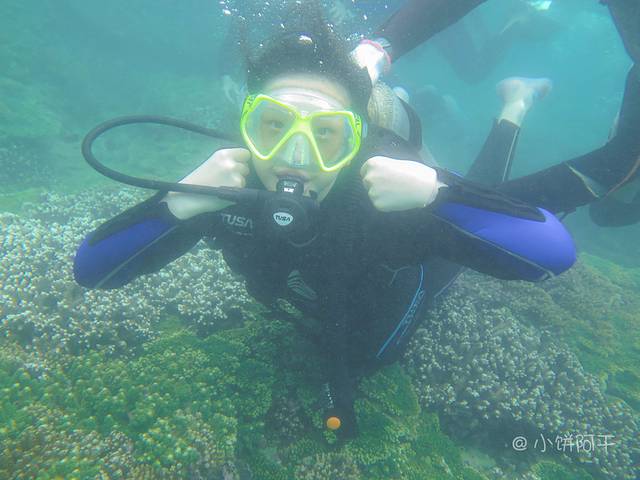 潜水去咯,一开始只是订了浮潜,总觉得深潜自己会害怕,结果浮潜完,摄影师非拉着我去深潜。其实潜水我比摄影师学得还快,教练说我胆大,其实我害怕得要命。在浮潜的时候我还不小心一巴掌拍到了一只水母,吓得我赶紧探出头大叫了一声,现在想想我那时候还真是急中生智没有在水里喊,不然那个海水的咸味一定会蔓延到现在。