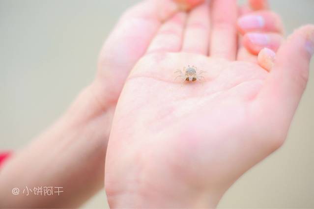 之前去济州岛,摄影师一直惦念着小螃蟹却没有找到,然后一直觉得很遗憾,这回在海边,我发现了小螃蟹,摄影师就蹲在打洞的小螃蟹边上不走了。