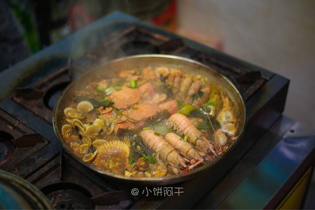 晚饭是在解放路边上的一个步行街小吃城吃的,看起来是个超小版的骑楼小吃街。四个人一个海鲜锅再一些主食差不多就饱了。