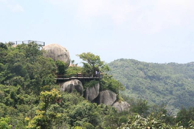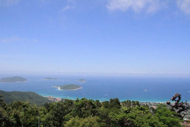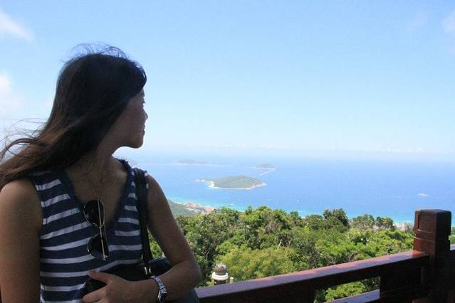 今天是最后一天,选择去亚龙湾热带天堂森林公园。在登上山顶的时候,我们都被热成狗了。但是站在塔上俯视整个亚龙湾的时候,并没有像别人说的那样,仿佛世界都静止了,毕竟旁边有大声喧嚷的游客,我没办法当他们不存在,但是很凉快,心情也能变好。我们呆在它上面吹着凉风,各自静止了片刻思考。