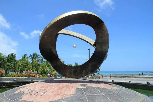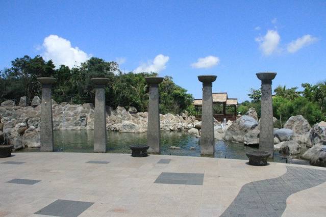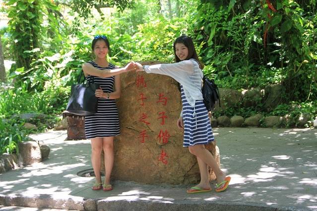 远处那个像心形一样的石头就是刻着日和月的,临走才发现忘记拍近照了。原来现在是三亚旅游的淡季,7月份来三亚还真是热,沙子都烫死了、、完全不敢光脚在沙上走。天涯海角还有个这样的设计,我只能说太有生意头脑了。它的出口得经过一处商城,里面有卖珍珠粉、特产等东西,自控能力不够强的人就很容易掏钱包了,对于两个吃货,我们买了一些椰子糕吃,味道一般般吧,木有太特别,鱿鱼丝和鱼干还不错,还有许多椰子糖,我们没有买,因为我们广州的超市都有一模一样的。再见啦,天涯海角。下一站,南山寺。