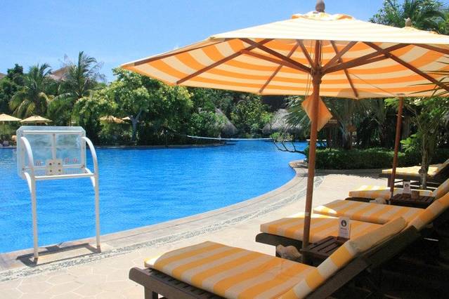 有一种游泳池叫别人家的游泳池。别傻了,这是西岛一间酒店的游泳池,当时在西岛潜水时,遇到2个广东江门的老乡,住这,进来参观了一下,环境比我们那“5星级酒店”美多了!我们那“5星级酒店”也有游泳池啊,四四方方的,水最深到腰,而且水中的漂浮物还不少,呵呵。。。完全没有想要拍下来的欲望。