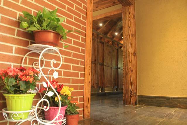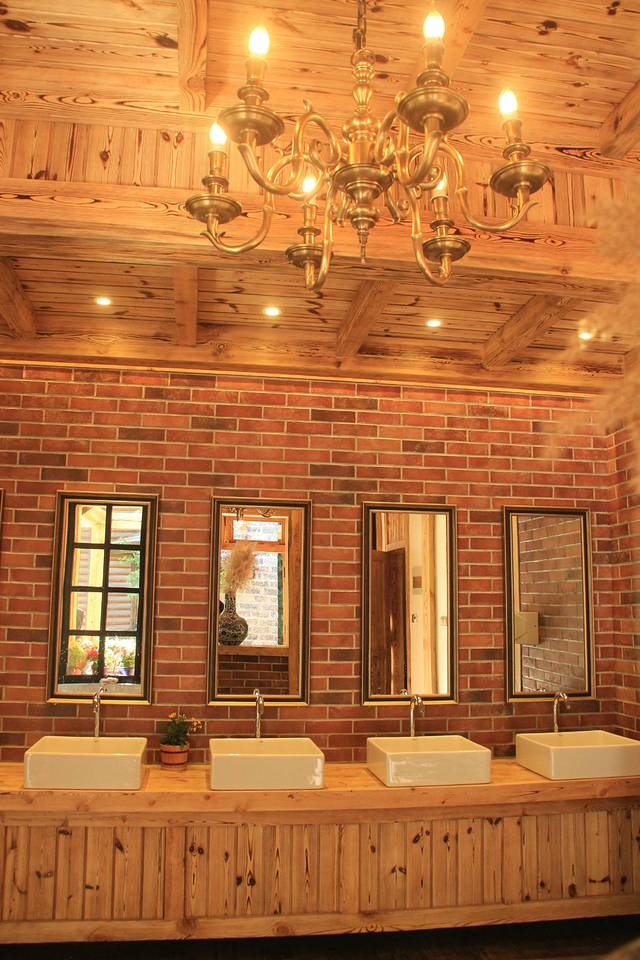 入园之前怕进去之后不好找厕所,提前去了趟卫生间,结果这一去可不得了,刚到卫生间门口就看到了摆放的花架,茂密的绿箩从花盆里垂下,各种装饰艺术品相当精致,摆放的也很有心,感觉不像是要去厕所,好像是要进会客厅似的。进去之后也是清一色木质结构,第一次觉得木头上那些凹凸状的年轮组成的花纹真是漂亮,而且一点异味也没有,不知道他们用的什么清新剂,还挺香的~~
