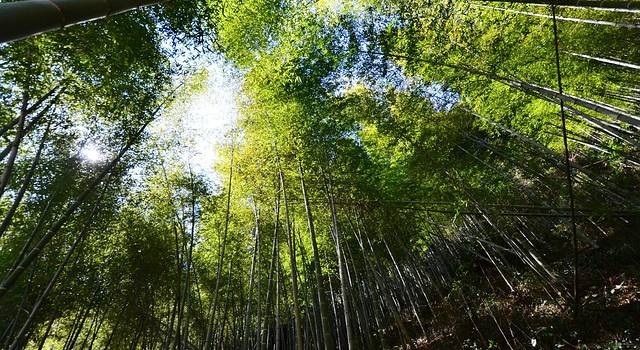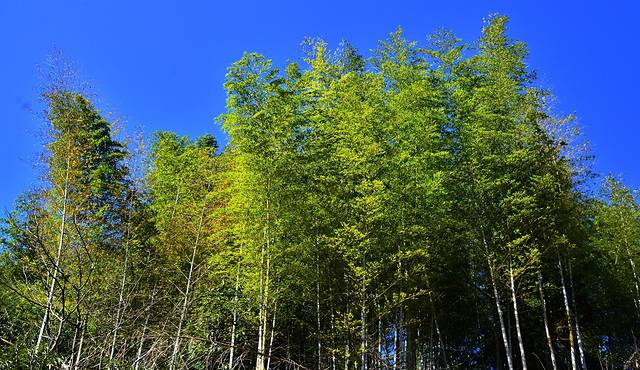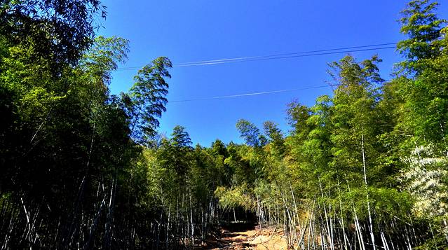 当天天气晴好,天空很蓝,随便配上竹林颜色都很好看。