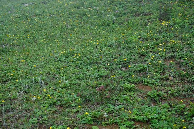 汽车在蜿蜒曲折的山路上慢慢地行驶,到达丁家村后,下车后,大家开始检查行装,开始徒步前进,今天天气很好,阴天很适宜徒步旅行,但美中不足的是不能登高望远,但是在行进在山间的小路上,一阵阵淡淡的云雾飘过,我们好似腾云驾雾般来到了仙境。沿着山间的羊肠小道,大家兴致勃勃地登山,在原始的森林里穿梭,到达一岔路口,大家的意见发生分岐,一部分建议沿山沟往上爬,一部分建议沿山脊往上走,我也建议沿着山脊走,多数人的意见沿山沟走,后来证明沿山脊走是对的。沿着山沟走了一个多小时后,我觉得好像方向不对,因为雾大,看不到远处,因此没有参照物,大家商量了一下,调整了方向爬上了一座山顶,到达山顶,浓雾己散,能见度提高,沿着一条经常走人的放羊小道前行。一路上怪石林立,奇树峥嵘,各种野花竟相开放,争奇斗艳,各种野生菌从地里冒出,大家一路走一面拣能吃的野生菌,很快到达3200米的垭口。翻过垭口,一大遍高山草甸映入眼帘,草地上盛开着黄色的小花,大家不约而同的<哇>,太美了,大家坐在草地上休息,赏花,照相,享受这大自然的恩赐,我照完相之后,静静的坐着,望着远处的山峰,沟里的羊群,身旁的山花,不时飘过的云雾,嗅闻淡淡的花香,一副具有诗情画意中国画的韵味。可惜我不是画家。可遇不可求的美景,真的是运气太好了。登山涉水就是这样不断的发现精彩纷呈的美景,不停地享受这样的景象,在山水田园快乐的生活。所以很多人喜欢登山,喜欢回归自然之美,喜欢这快乐,宁静的生活。