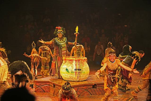 经典的原野剧场将要开始《狮子王庆典》的演出,演出前的气氛玩戏把大家的热情都带动起来了。