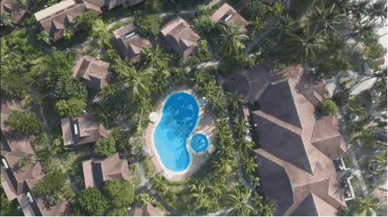 浪中岛本来就安静,SARI把这种安静舒适再度的升华。莎莉太平洋整个度假村行程一个围合式,中间是游泳池,周围是独栋别墅。房型有池景别墅和园景别墅。