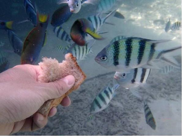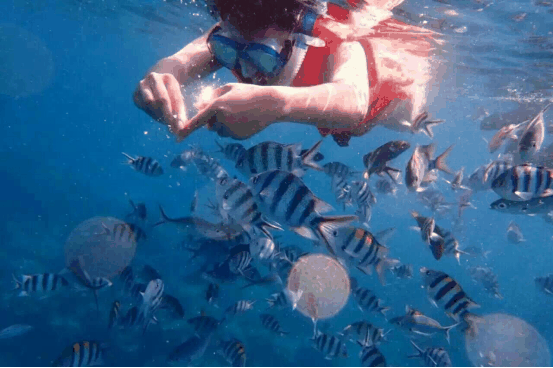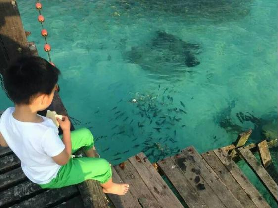 在海岛的时光,不是光着脚丫到处跑,就是一头扎进海洋深处。度假村码头和石头边有许多彩色小鱼,让孩子们带上面包,就可以引来更多鱼群或者小鲨鱼。
