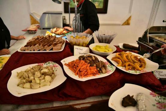 度假村的三餐以自助为主,并且按照酒店所住国家客人多少来定制口味,但每餐都有会不一样。甜点、水果、咖啡饮品免费提供,当然还可以根据自己口味点餐,费用也不高。大堂有免费WiFi哦。