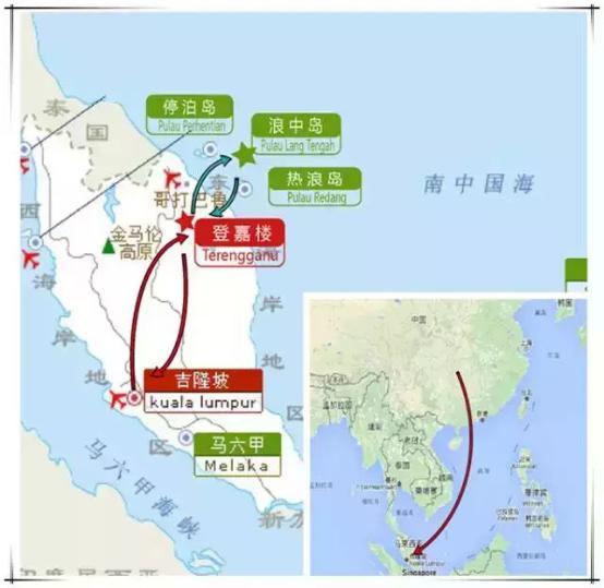 路线:国内——吉隆坡——登嘉楼——墨浪码头——热浪岛——浪中岛