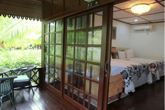 度假村环境非常漂亮幽静,围合式院落有三种房型,池景别墅、园景别墅、海景别墅,舒适安逸。房间空间非常大,简洁温馨,大浴室化妆间、衣帽间、电视、保险箱、空调、熨衣设备、吹风机、免费洗浴用品、拖鞋、咖啡设备、电烧水壶、迷你吧都有配置,床铺也很大,2张1.5米的大床足够2大2小一家人住。度假村有自己发电,所以不用担心会像其他度假村那样停电。