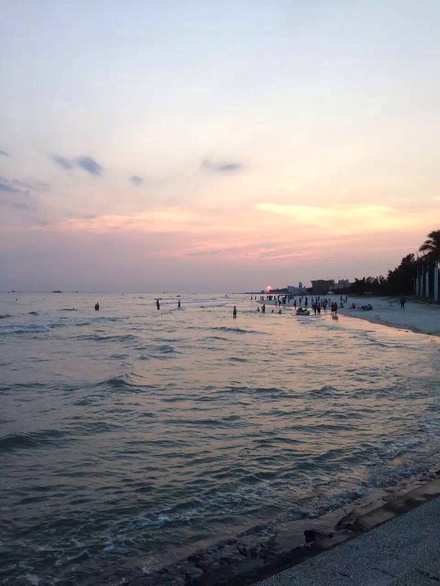 下午六点多的时候太阳还是很大,于是我们选择在酒店玩手机,大概七点才出门。到达银滩的时候,太阳已经落山,人依旧很多,我们沿着岸边走,吹吹海风,听听海浪声,十分惬意。傍晚时分的银滩,真的很美。