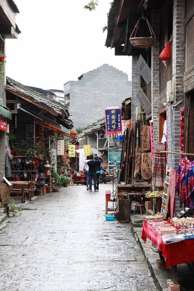 漓江精华段漂流结束上岸,自会来到这里。相比热闹的阳朔西街,兴坪饱经沧桑,古朴依旧,被时光磨得光滑的青石板,更显阳朔的原汁原味。破败老旧的街巷间,人烟稀少,淡季时更是只闻鸡啼狗吠,只因每年洪水肆虐。尽管如此,依然有不少恋家的村民和远道而来爱上这里而定居于此的人,始终坚守着这片处处可见岁月痕迹的土地。