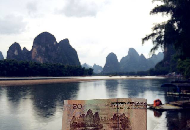 兴坪古镇位于漓江东岸,漓江在此迂回而转向流去,20元人民币背面的图案就是兴坪实景。