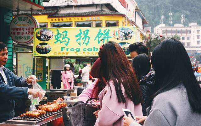 很多人排队吃蚂拐饼