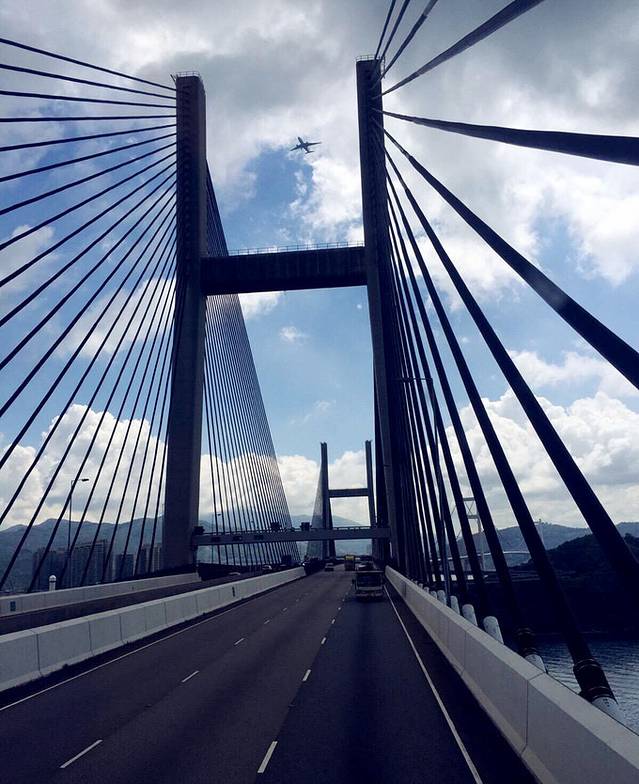 当飞机缓缓的降落在香港赤鱲角国际机场的停机坪上时,坐上地面交通工具,在通往市区的路上,仔细地欣赏沿途的风景。每次来到香港的时候我都会被香港的美所感动,刀刀进心脏的那种。香港的青马大桥,是全球最长的行车铁路双用悬索式吊桥,亦是全球第八长以悬索吊桥形式建造的吊桥,从观景台上远眺青马大桥,足可见识它的恢宏气势,氤氲中的生硬钢铁结构,象征着人类工程的伟大。每次经过青马大桥都有一阵沧海桑田一晃十一年的感触,多少年前,就已荡失在这青马大桥,越美丽的东西我越不可碰。