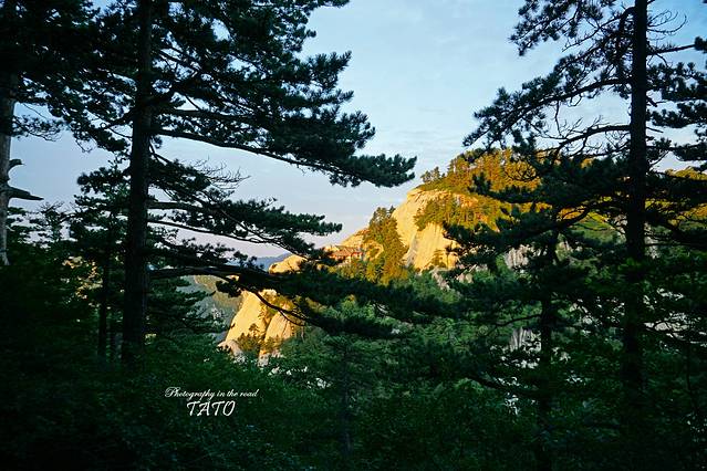 游华山不走回头路,我们看完日出就往前继续前行了,阳光下,松树的剪影。