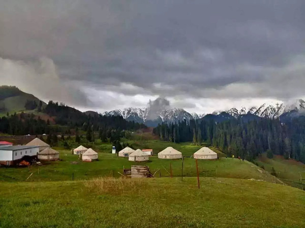 细雨中的那拉提草原,更增添了一丝诗情画意。雪山,草原,毡房,美食,美酒,我们都醉了。。。。。