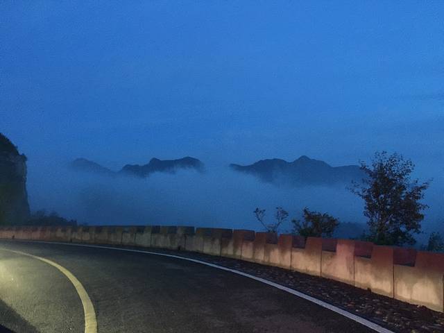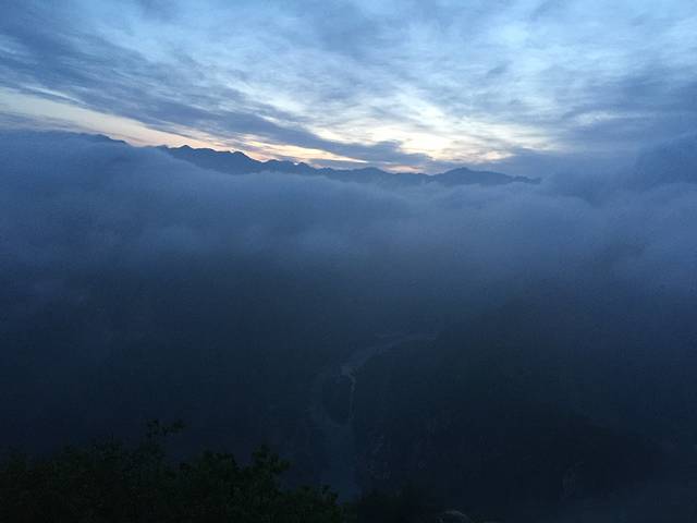 云好像是围绕在我们外侧的一条河,从左面的山缓缓飘出,从右侧的山峰之间通道飘走