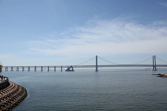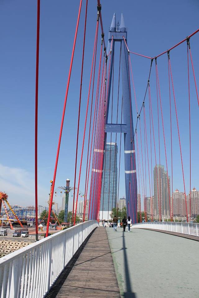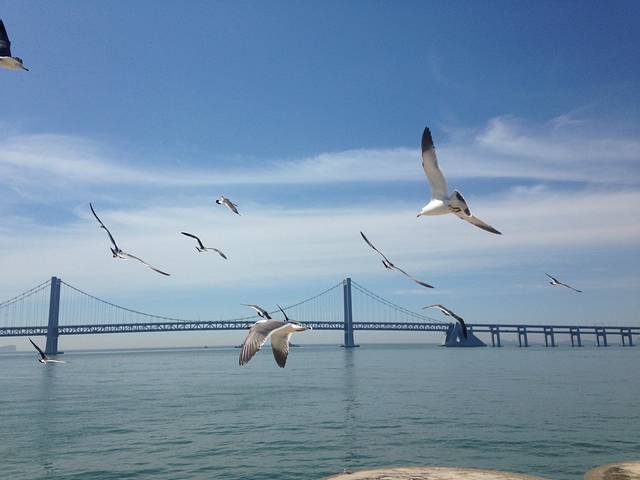 往前走就能看到这个大桥,走过大桥就是星海广场