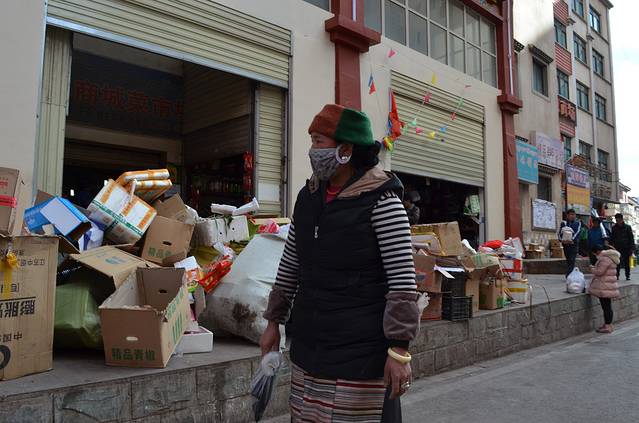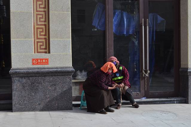 昌都遇到的藏民,帕子放在头上,感觉很闲适的样子