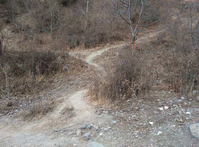 走到这里,有两条路可供选择,一条是小路,比较陡,但路程比较近,从下面栓了一个蓝绳子那里上去,另一条是大路,路缓且长。