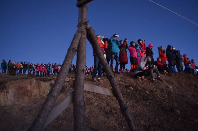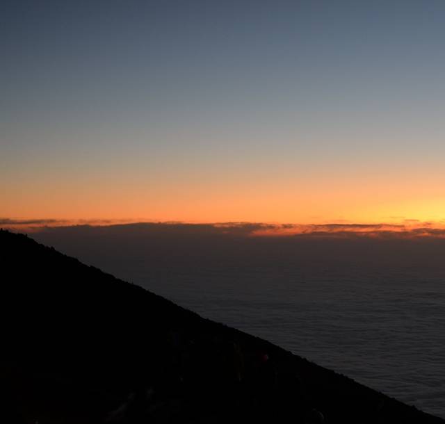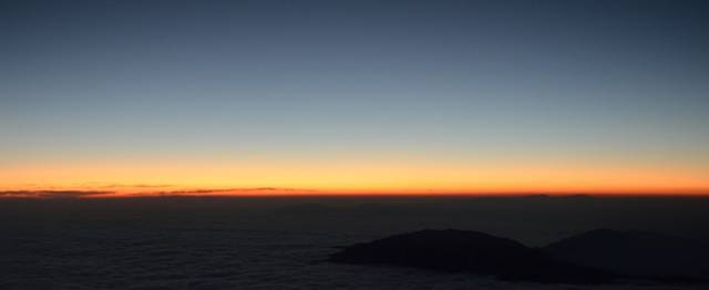 早上要到7点的时候,猴哥过来叫我们去看日出了,我早就想从床上起来了,因为昨夜根本就没有睡着,尝试过起来去外面看流星,但是一打开杯子,那冰爽让人简直受不了,又缩了回去。漫漫长夜,终于熬到了早上,闻名遐迩的日出可千万不能错过。我们爬了十几分钟,就到了看日出的地方,没想到已是人山人海,还没什么光,看到的都是些人影,大家都摆好相机,找好位置等待日出的那一刻。我的心情倒是没那么激动,还没拍两张相机就没电了,就跑到几个看起来很专业的人旁边,和他们讨论拍日出的事情去了。三言两语间还是充满着无限的期待,虽然几张下去,没有网上传的照片那么惊艳,但自己拍出来的感觉还是不一样,这是没有被异化的东西,带有情感