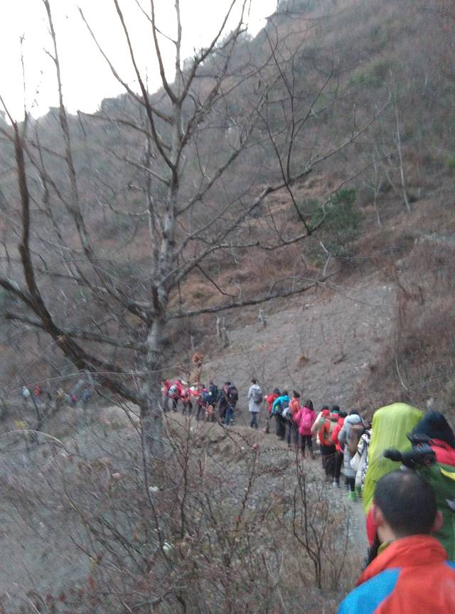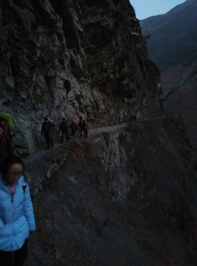邓军长家都住了几百人,好多人的装备都挺专业的,我们跟着大部队前进,就不会迷路了。我发现,大家虽然穿得都挺专业的,但是好多都是业余的,有些女生恐高,不感看下面,贴着峭壁走,队长帮他们一个一个安全走过去,我本来觉得没什么的,看见前面行走得这么艰难,警惕性瞬间倍增。