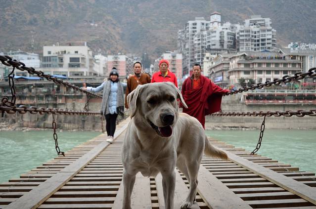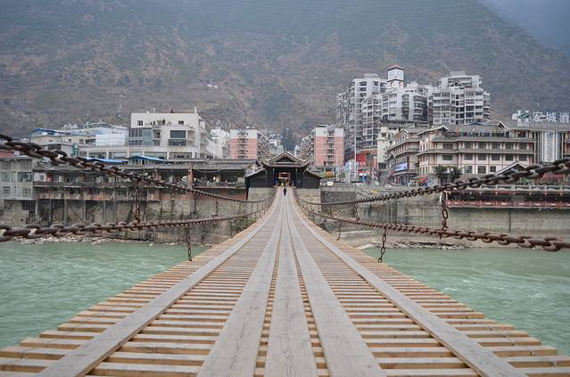 金沙水拍云崖暖,大渡桥横铁索寒。当初危险的泸定桥的铁索上面已经铺满了木板,但站在上面,摇一摇,晃一晃,再看看眼下的江水,还是很酸爽的!