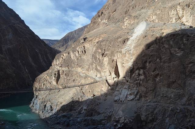 坐车下山没比走路下山好到哪里去,坐车,玩的也是心跳呀!只需有0.001秒的疏忽,人就有可能落到悬崖下面了,车里,大家都有些慌张,只有开车师傅一人,淡定自如,说自己都开了好多年了,这完全没问题。一下子,我就明白了越野俱乐部在这里来探险的原因了。有一段路,断了一半,只有一般车身那样宽,我们倒是走过去换的其他车,但是师傅说,那种路也能快,把速度加快,依靠惯性,靠外的两个轮胎悬空就飞过去了,终于明白了“飞车”的含义。