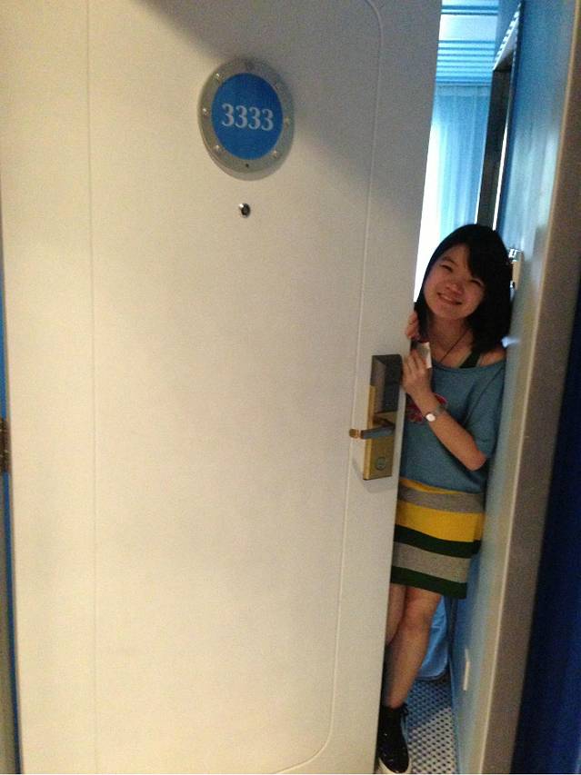 先到前台check-in.拿到房卡并领取门票.