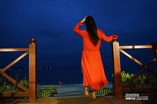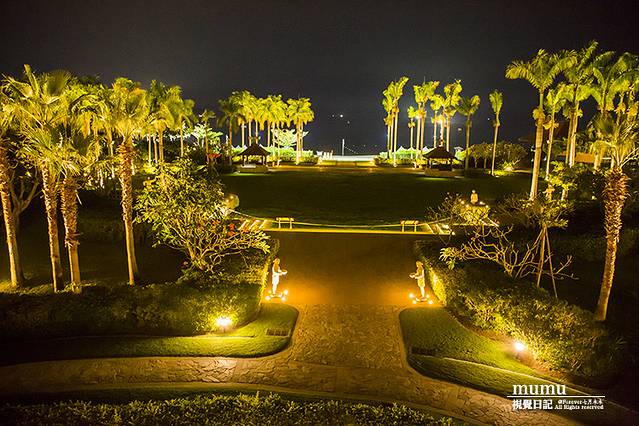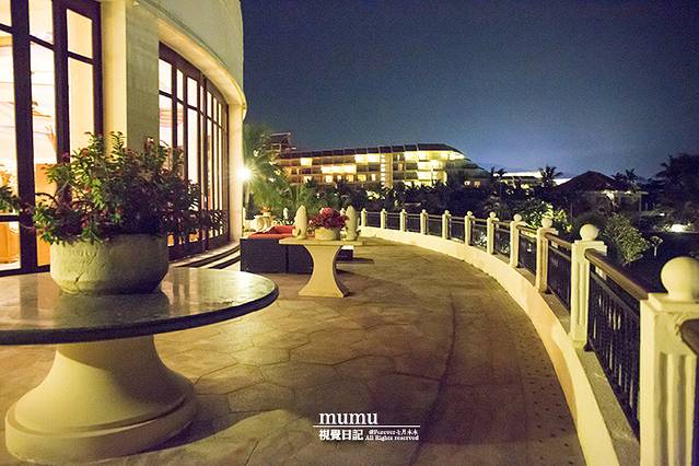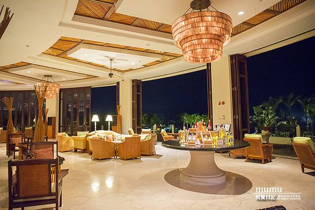 走到大堂的另一面,豁然开朗,站在环形的阳台上,直接可以看见不远处的海滩。夜幕降临,灯火辉煌,清风阵阵,吃完海鲜,坐这里约上三五好友,博古论今就免了,谈天说地还是可以的。据说,万豪的大堂吧也被誉为亚龙湾最佳观星赏月之地哦!